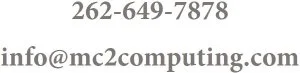 MC Squared Computing serves the IT needs of the SMB market in Northeast and Southeast Wisconsin. If you are having immediate issues, want to avoid future issues, or just feel it’s time to get your IT in order, please send us a note regarding your needs or concerns. We will respond to all inquiries within 24 hours or less